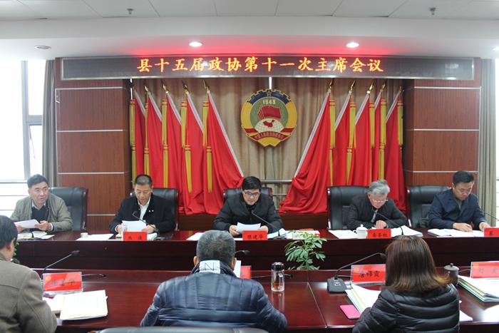 12月6日下午,县政协召开十五届十一次主席会议。县政协主席陈建华主持会议,县政协副主席桑圣权、丛俊、蔡东,秘书长张恺参加会议,县政协各委室负责人、专职常委列席会议。